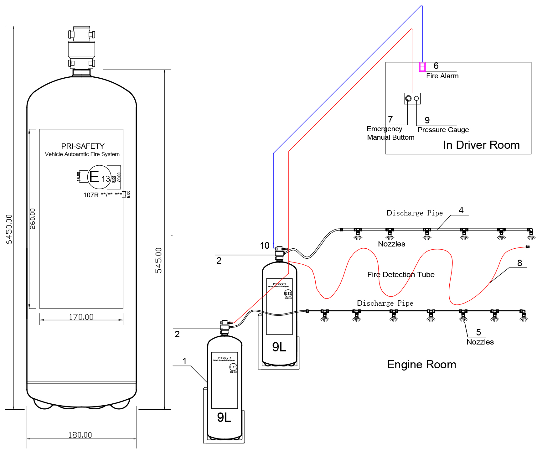 | PRI-SAFETY UN ECE R107 Certificated Mining Machine Automatic Fire Suppression System | |